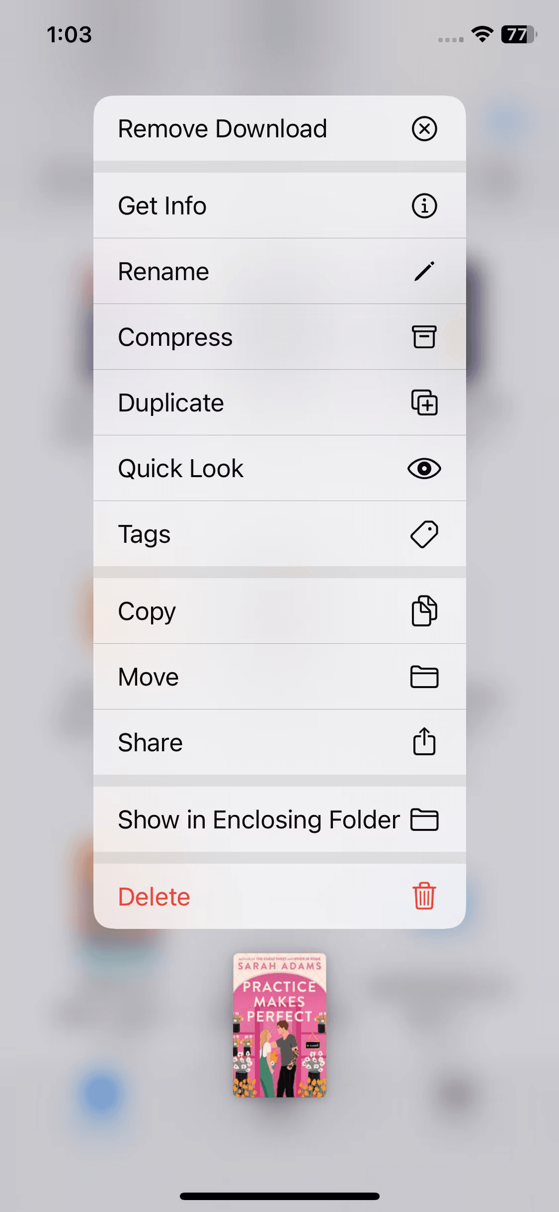 - Long-press the document, choose Share, and select Kindle from the options.